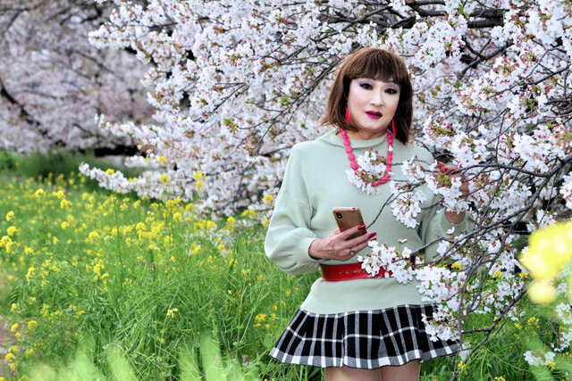 少し時期は遡りますが、熊谷市の桜と菜の花のコラボショット。これも素敵な一枚ですね。万朶(バンダ)の桜と可憐な菜の花の景観+ブリーフ袖トップスとミニスカスタイルの優美な美女。美に美を重ねた Beautiful Scene 。絵になりますねえ。